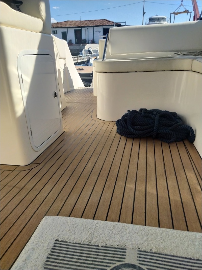 -Teak interno ed esterno -Doccetta in spiaggetta -Cucina a gas esterna con lavabo -Tendalino integrale, con ombreggianti aggiuntivi per pozzetto -Cuscineria in ordine